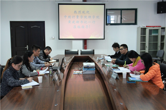 2014年12月5日14时,中国计量学院理学院黄建湖书记一行人来我校参观,并与我院副书记孙安梭等人就学院创新管理模式进行了深入交流。