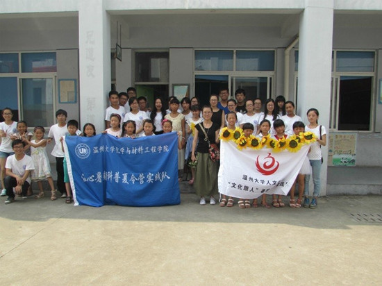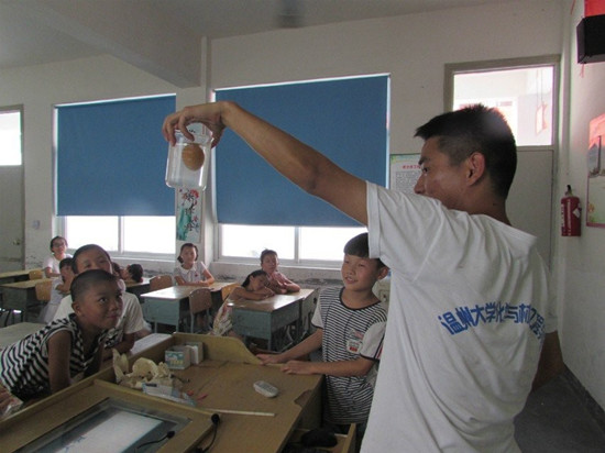 2014年7月6日,温州大学化学与材料工程学院“温心”暑期科普夏令营携手“文化旅人”实践队在温州市瓯海区丽岙三小进行第5天的教学活动。
