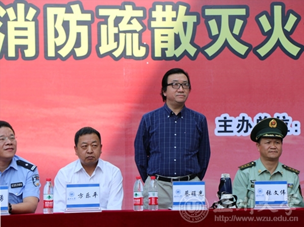 本次演习由温州大学化材学院、保卫处和温州消防特勤大队共同举办。温州大学校长蔡曙光、化材学院党支部总书记方乐平、化材学院党支部副书记潘从义、消防特勤大队政委、保卫处处长孙安梭等亲临现场指导演习工作。