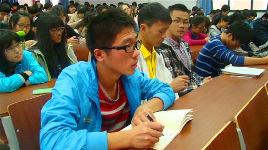 2014年11月19日下午13:20,校党委委员、宣传部部长潘玉驹老师的形势政治课在化学与材料工程学院11A-401举行。