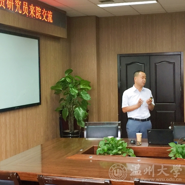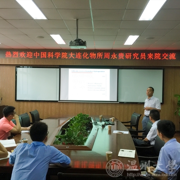 2017年9月25日上午9:30,中国科学院大连化学物理研究所周永贵研究员应邀做客我院瓯江学术论坛,副院长张兴国及众师生参加论坛讲座。