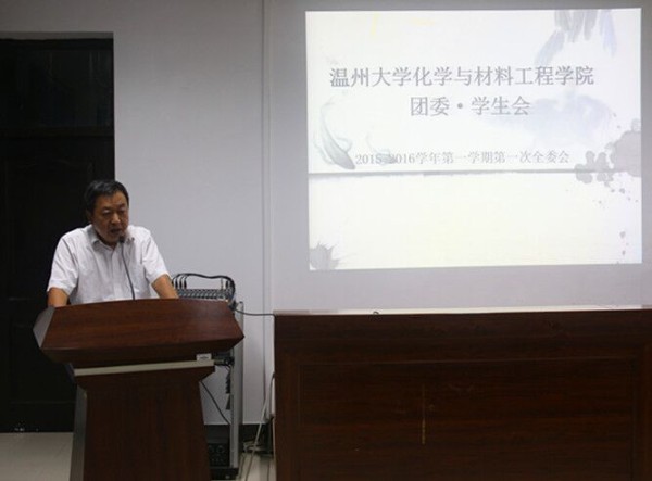 9月20日18:00,化学与材料工程学院团委.学生会在11B-208召开了2015-2016学年第一学期第一次全委会。党总支书记方乐平、党总支副书记潘从义、学生科科长王壮出席了本次会议,会议由学生会副主席朱铮主持,团委.学生会全体成员参加。