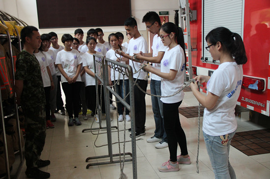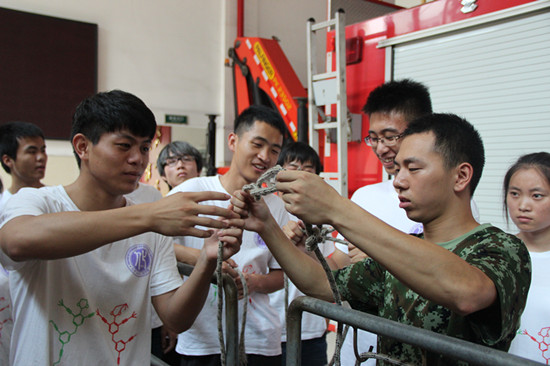 2014年7月3日上午9点,消防战士组织温州大学化学与材料工程学院“烈火雄心”暑期实践队队员们进行为时40分钟的消防安全知识培训,希望能进一步加强队员的消防安全意识,提高队员的防灾避险自救能力。