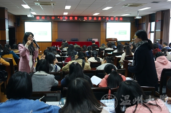 12月7日,冬日暖阳倾照的午后,温州二中三位教授级名师莅临我院,在学院报告厅为14和15级化本的师范生们做了题为“分享教育,筑梦未来”的分享讲座。