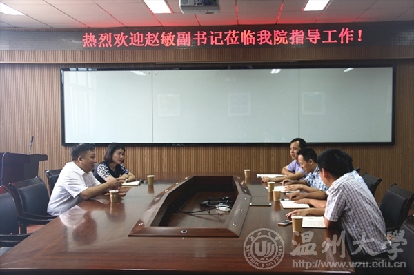 9月17日下午,校党委副书记赵敏、校团委书记屠霁霞来学院调研学生科技创新工作。学院院长王舜、党总支书记方乐平、副院长张兴国,党总支副书记潘从义出席。