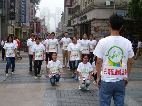 早上六点,大家早早的整装待发,全体实践队员集合前往松台广场参加活动。仪式于八点准时开始,分四项内容进行:第一项,鹿城区区委会副书记致辞;第二项,各领导嘉宾为各青年志愿突击队和大学生实践队代表授旗;第三项,大学生实践队代表发言;第四项,全体人员参加三公里治水助跑接力。之后,队员们分别前往开泰百货、五马街、中山公园进行了快闪活动,在这些地方你可以看到有这样一些青年分散在不同地点、不同方位像其他民众一样或是漫步或是脚步匆匆,似乎赶着上班亦或是欣赏风景……忽地,不知哪里铿锵有力的传来了一声“集合”的口令,只见,原来那些看似漫不经心的青年们,忽然快速有序的变幻出队形,掷地有声地喊出“青春助力五水共治,全民共建浙南水乡”的响亮口号,好似通过这次呐喊就可以召唤并推动全民行动,让每个人都有饮水思源的意识,让“五水共治,共治吾水”的思想在全民中生根发芽。随后,他们又迅速散开重新回归到了大众集体中,好像什么事都未曾发生……
