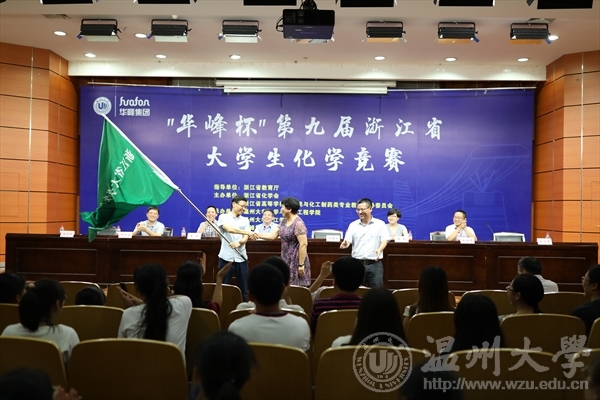 “华峰杯”第九届浙江省大学生化学竞赛暨第十四届浙江省高校化学化工实验教学中心主任联席会于8月24日至26日在温州大学举行。8月26日,由浙江省教育厅指导,浙江省高等学校化学类与化工制药类专业教学指导委员会和浙江省化学会共同主办,温州大学承办的“华峰杯”第九届浙江省大学生化学竞赛落下帷幕。教育部高等学校大学化学课程教学指导委员会委员、浙江工业大学倪哲明教授,浙江省大学生化学竞赛委员会秘书长、浙江大学方文军,我校副校长蔡曙光等出席开幕式。经过角逐,我校参赛队伍获一等奖1项,获二等奖1项,获三等奖9项。