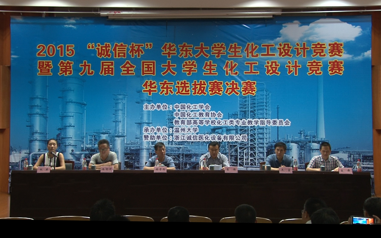 8月7日,2015“诚信杯”华东大学生化工设计竞赛暨第九届全国大学生化工设计竞赛华东赛区选拔赛在我校茶山校区会展中心雁山厅隆重开幕。竞赛由中国化工学会、中国化工教育协会、教育部高等学校化学工程与工艺专业教学指导委员会主办,温州大学大学承办,浙江诚信医化设备有限公司协办。浙江大学、上海交通大学、华东理工大学、南京工业大学、浙江工业大学、温州大学等45所高校的60支优秀代表队脱颖而出,汇集我校。