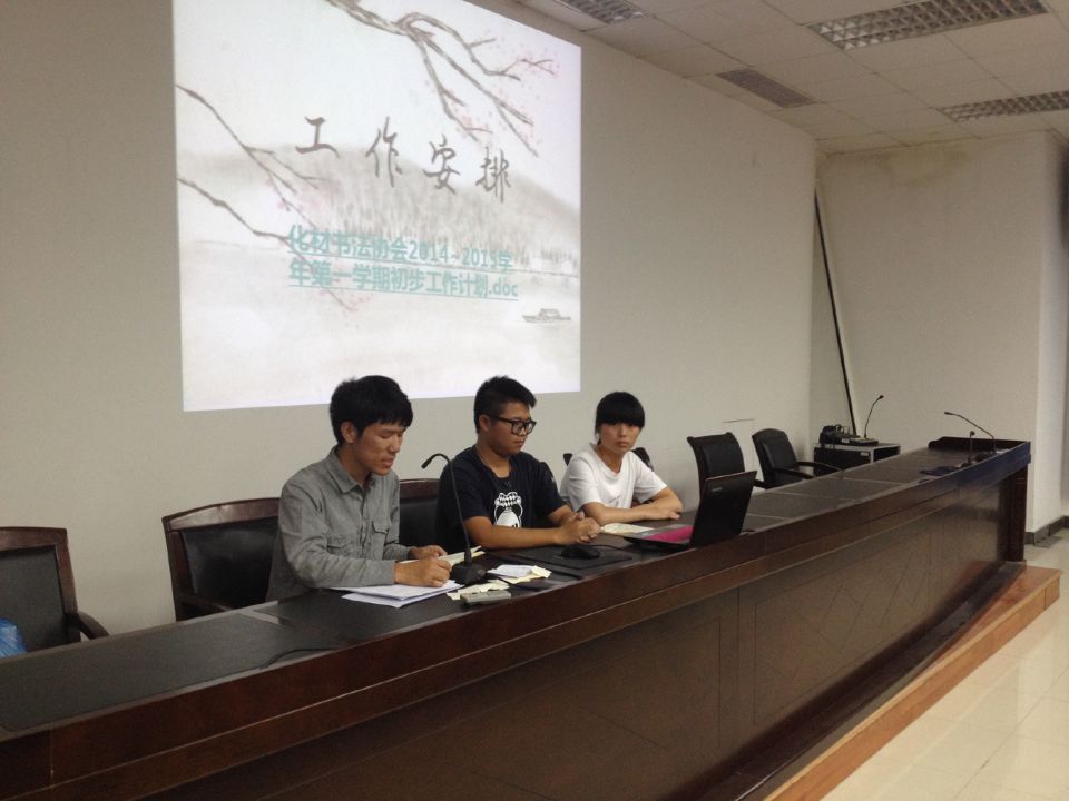 2014年10月12日18:30在化学与材料工程学院11C401举行了社团动员大会,由化材学院团委学生会创新实践活动中心的干事吴丹丹和张专主持,化材学院团委学生会前社团部副部长徐静和前化研会长沈哲天出席了本次大会,全体协会会员参加了本次大会。