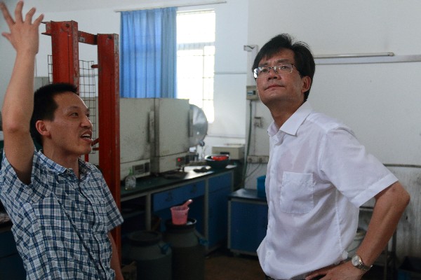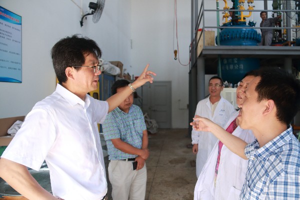 6月26日下午,骄阳似火,蔡袁强校长冒着酷暑来到化学与材料工程学院考察校企联合研发中心的建设工作。蔡袁强校长参观考察了特种聚酯多元醇中试开发中心和制笔行业工程实验室,详细调研了目前学院校企联合研发中心建设和发展中存在的问题与困难。充分肯定了化学与材料工程学院产业化研发中心建设所做的工作和取得的成绩,对中心运行和成果转化情况给予了高度评价,特别是对赵亚娟教授长期坚守产业化开发并取得突破性成果表示祝贺。他表示,学校将采取具体措施积极支持学院产业化研发中心建设,特别是对研发中心场地安排学校将给予大力支持。