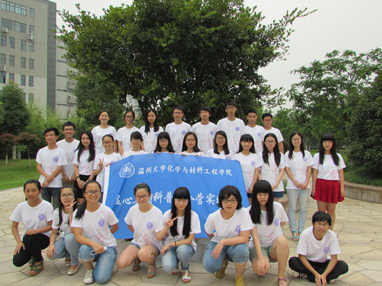 2014年6月29日,温州大学化学与材料工程学院“温心”暑期科普夏令营实践队全体成员在化材楼进行着紧张的教学前准备。