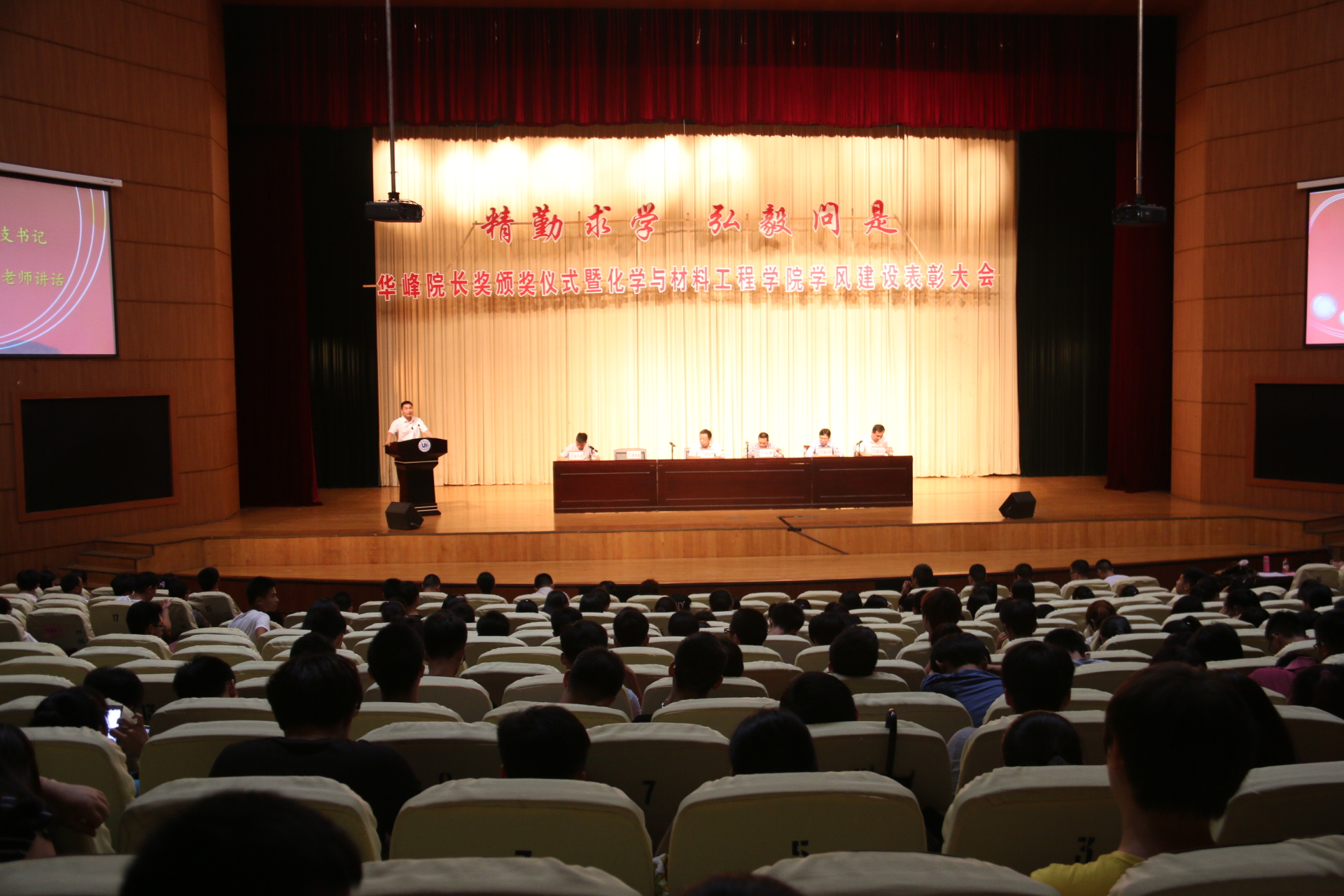 为进一步加强学院院风、班风、学风建设,引导和激励学生刻苦学习,筑志成才,6月12日晚,化学与材料工程学院在育英大礼堂举行了“华峰院长奖”颁奖仪式暨“精勤求学 弘毅问是”学风建设表彰大会。