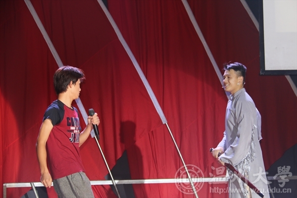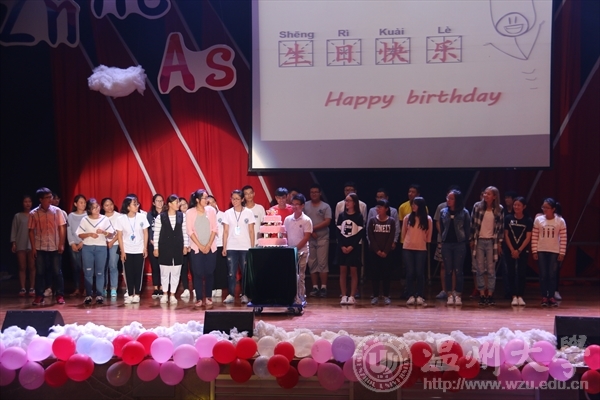 晚会中,来自16化学国际班的外国留学生向我们分享了自己的感受,并表达了对温州大学的喜爱,与此同时,他们表示:来自学院的关心和同学间的友谊也是他们初来温大最美的收获。临近尾声,学院精心为在十月份过生日的新生准备了生日蛋糕,伴随着“Happy birthday”的音乐声,每一位同学许下了生日愿望,全场观众一起喊出,“化材一家人!”五个字,不仅温暖了初来化材学院的新生,更感动了每一位化材人,虽然我们远离了一个家,却来到了另一个大家,风雨同舟济!化材一家人!