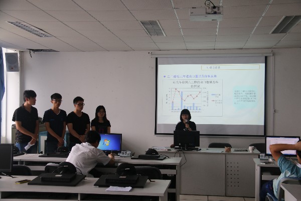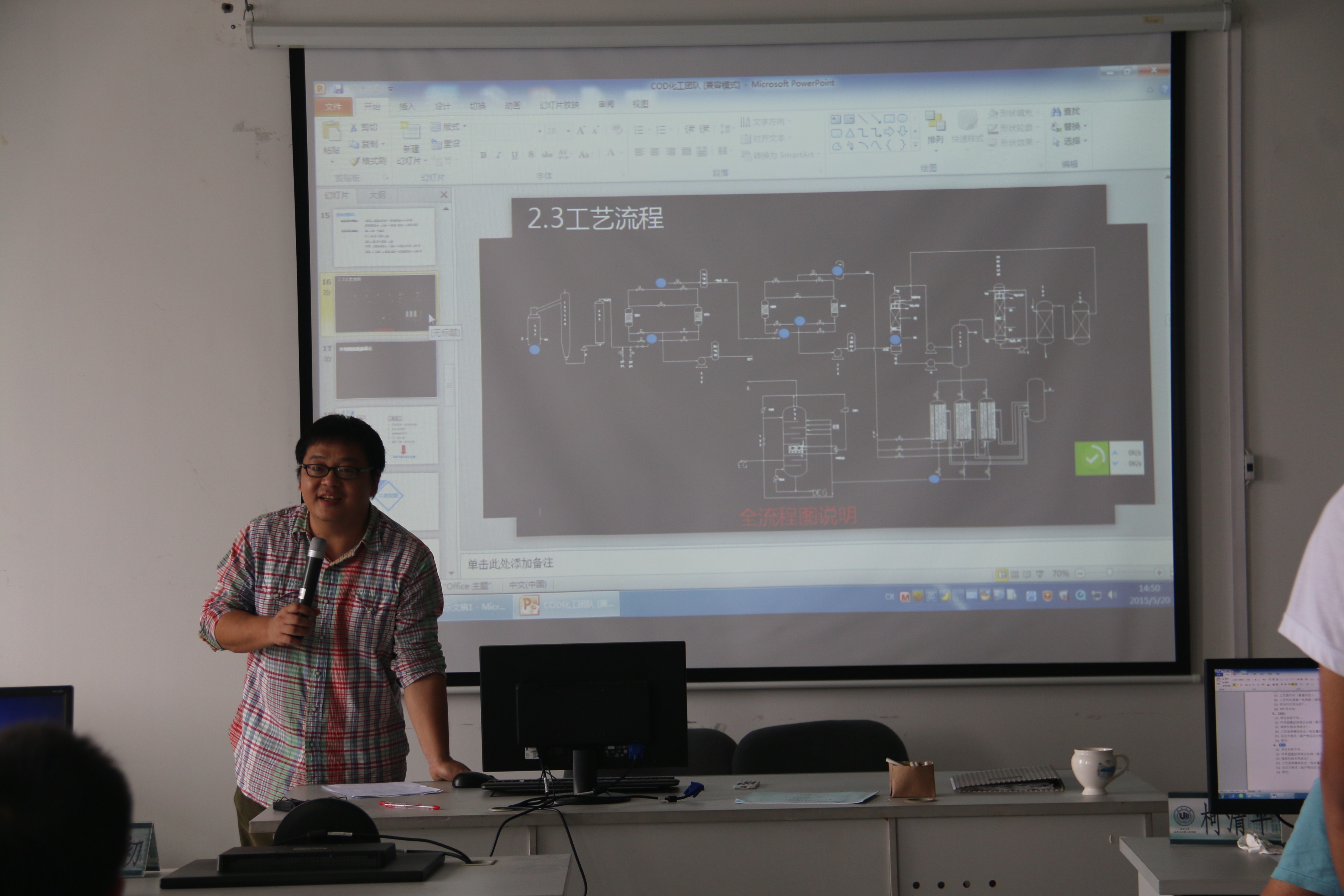 化学与材料工程学院的PLUS团队由5位大三的同学组成,有了去年的比赛经验,他们更加熟练和有默契地用PPT展示他们的设计方案,分别从项目背景、工艺介绍、厂址选择、环境分析、项目总结五方面来陈述。老师们对此有较高的评价,但是也提出了一些建议,希望同学们化工术语的表达和设计图的绘制能更加规范。瓯江学院的COD团队以合理明确的分工陈述方案被评为老师们夸奖很有团队精神。徐进老师也指出,做一个设计方案是个学习的过程,在一个团队里,大家都要表演好自己的角色。