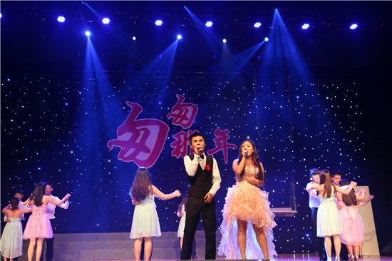 在节目的间隔,还设置了游戏、抽奖、合影等各种互动环节。尤其是合影环节,将现场气氛推向另一高潮。主持人高举自拍神器“自拍杆”,与大家合影留念,而此时观众席中部分同学亮起了手机闪光灯,恰巧组成了一颗大大的爱心。如此充满爱意和创意的合照,赢得师生一片点赞。