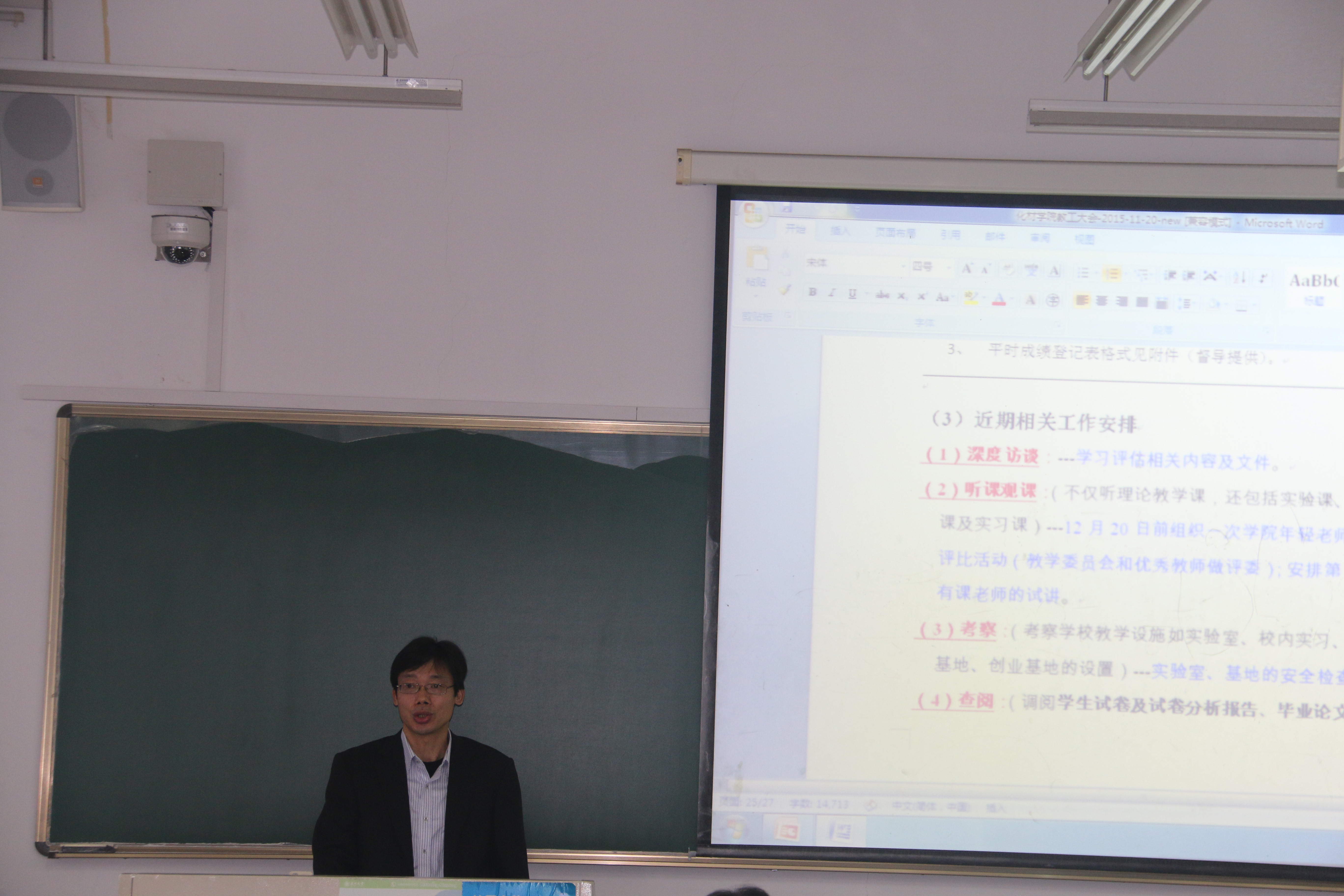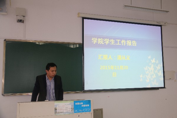 2015年11月20日下午,化学与材料工程学院在11A-310召开了教职工大会。会议由党总支书记方乐平主持,学院全体教职工参加。