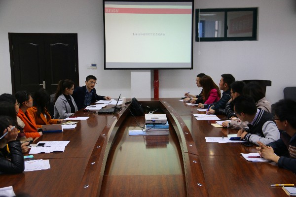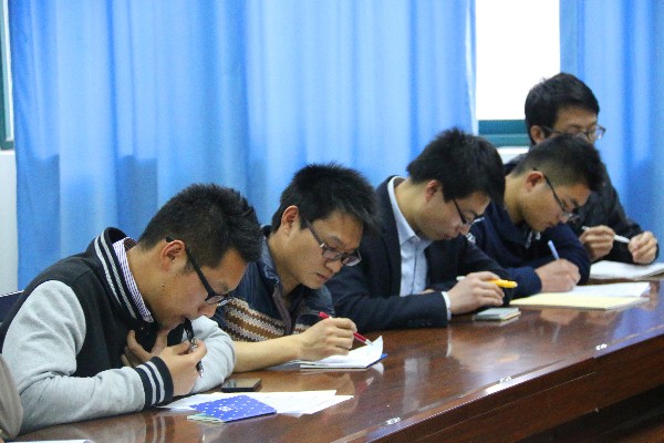 2015年3月25日,化学与材料工程学院于11B-204举办了新学期第一次研究生党员党务工作会议暨教育活动布置大会,参与会议的有学生科科长王壮老师和研究生学生支部委员。