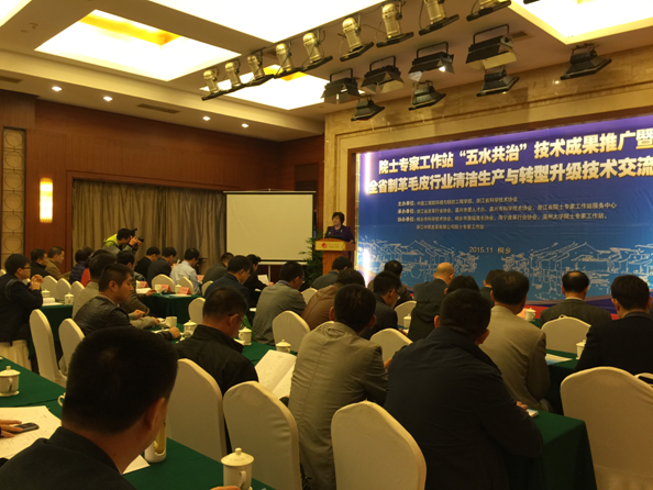 2015年11月9日,院士专家工作站‘五水共治’技术成果推广暨全省制革毛皮行业清洁生产与转型升级技术交流会”在桐乡东方大酒店召开。本次会议由中国工程院环境与轻纺工程学部、浙江省科学技术协会主办,浙江省皮革行业协会、嘉兴市委人才办、嘉兴市科学技术协会、浙江省院士专家工作站服务中心承办。来自全省各地制革毛皮企业共120多人参加会议。温州大学院士专家工作站作为协办单位也参加了此次大会。