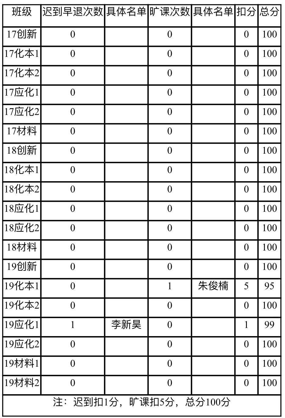 为保证疫情期间线上教学顺利展开、加强我院的学风建设、督促学生按时参与线上课程,现对2019-2020学年第二学期第十四周考勤情况进行通报。每天由各班负责人统计各科出勤情况并上报,最终一周的考勤情况于每周五进行汇总公布。