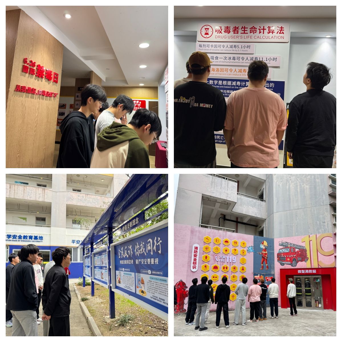 温州大学安全教育基地集展示、体验、教育功能于一体,涵盖了反诈宣传、禁毒教育、消防安全等多个重要安全领域。在参观过程中,学生们通过观看详实的案例展板、警示影片以及操作模拟体验设备,系统学习了防范电信网络诈骗的要点与技巧,深刻认识了毒品的危害与防范知识,进一步巩固了火灾应对与消防器材使用等安全技能。内容丰富、形式生动的展示给同学们留下了深刻印象,使抽象的安全知识变得可感、可知、可学。