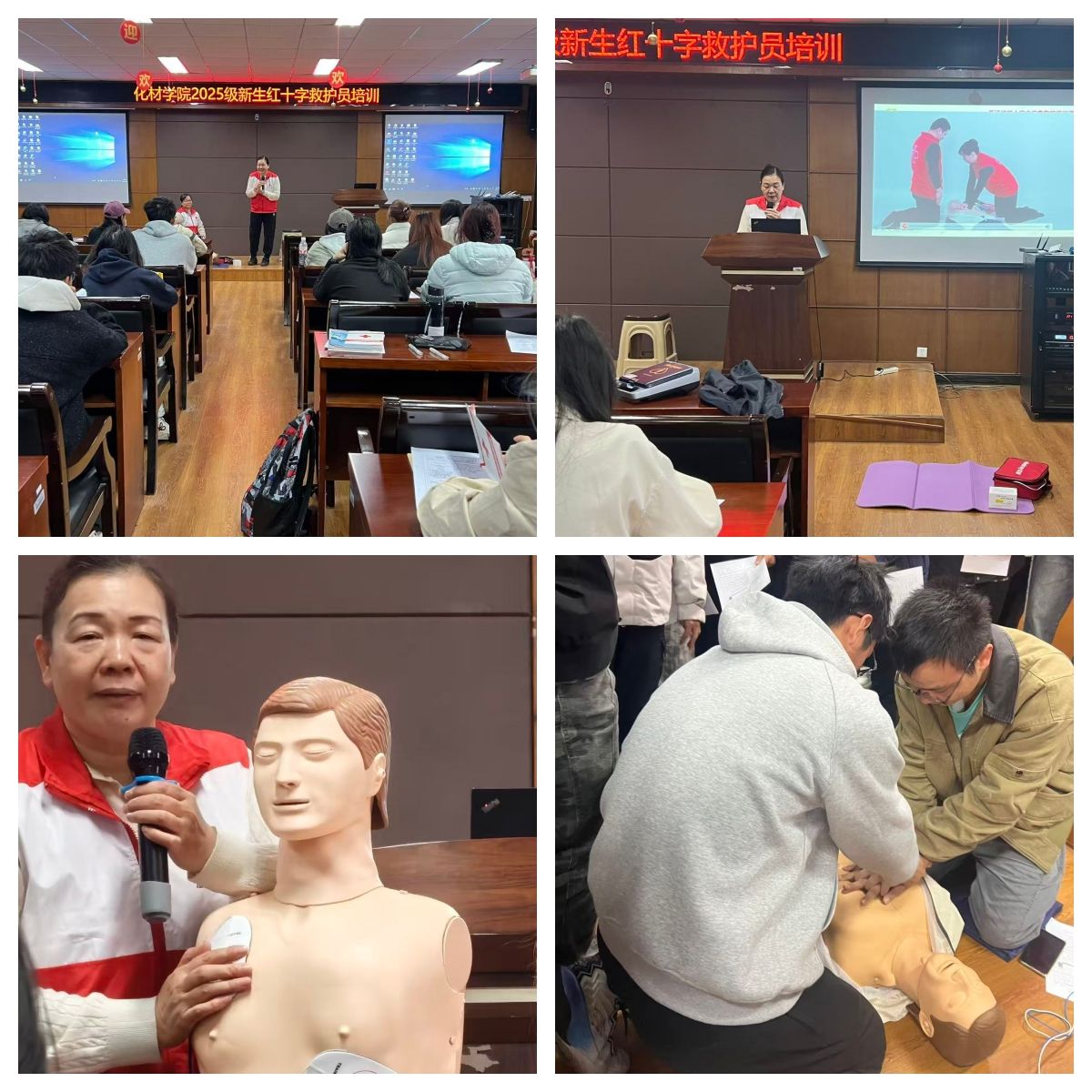 为普及应急救护知识,提升师生应对突发事件的自救互救能力,积极弘扬“人道、博爱、奉献”的红十字精神,化材学院于2025年12月6日至7日,在11B208会议室连续两天组织开展红十字应急救护员专题培训。本次培训吸引了学院各年级学生骨干、实验室安全员及青年教师代表踊跃参加。
